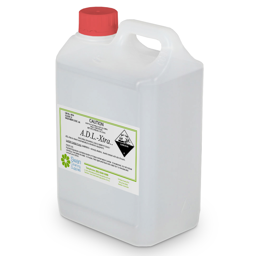 Quick Overview: ADL-Xtra possesses excellent cleaning power.  It removes all soils normally encountered in commercial kitchens. It is specially formulated to clean efficiently in Perth’s variable water supply.  ADL-Xtra works just as efficiently in the soft water areas, located south of the Swan River, as it does in the northern suburbs where hard water predominates. It is safe to use on china, plastic, melamine, copper, mild steel, stainless steel, glassware and cutlery.