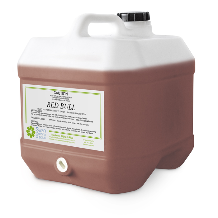 Quick Overview: Red Bull is a specially formulated alkaline cleaner for areas where there is heavy soil and grease. It is ideal for use on kitchen floors, areas leading out of kitchens and other heavy traffic areas.