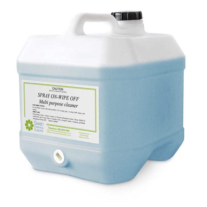 Quick Overview: Spray On Wipe Off is easy to use. Just dilute to the required strength with tap water, then spray on and wipe off. Numerous applications in the home, commerce and industry.  It speedily cleans vinyl, painted surfaces, glass, plastic, rubber, perspex, porcelain, aluminium and brass.